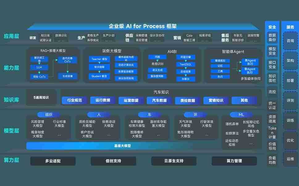 豪门国际问学智车解决方案是一套基于AI技术的汽车行业智能化系统,,,,覆盖从底层算力到顶层AI应用的全栈方案。。。方案由算力层、、模型层和应用层组成:算力层,,,方案支持多种一体机配置,,,具备云端灵活部署、、、多云适配以及动态优化计算资源的能力;模型层,,,豪门国际问学平台版提供了企业级AI应用一站式构建与管理平台,,,,支持基于后训练强化技术的汽车企业专属模型的训练、、、评测和运营;应用层,,,豪门国际问学DeepSeek版提供包括超级员工、、、智能招采、、、、智能营销、、智能客服、、AI for BI等一系列解决方案,,,可助力汽车行业实现数字化转型,,让管理更智能、、、、响应更敏捷。。。。